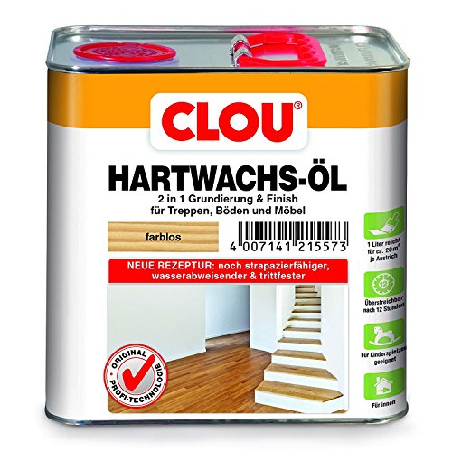 Clou Hård vaxolja färglös: Slitstark träolja för inomhusbruk, 2-i-1 primer och finish för bänkskivor, parkett, trappor och möbler inomhus, 2,5 l