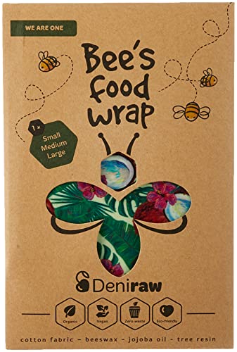 Deniraw Bee's Wrap vaxpapper, kokosnöt, set med 3 stycken, olika storlekar, gratis e-bok – hälsosamma veganefterrätter