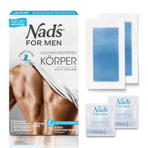 Nad's For Men kalla vaxremsor män – hårborttagning för kroppen, alla hudtyper, 20 vaxremsor + 2 vårdhanddukar