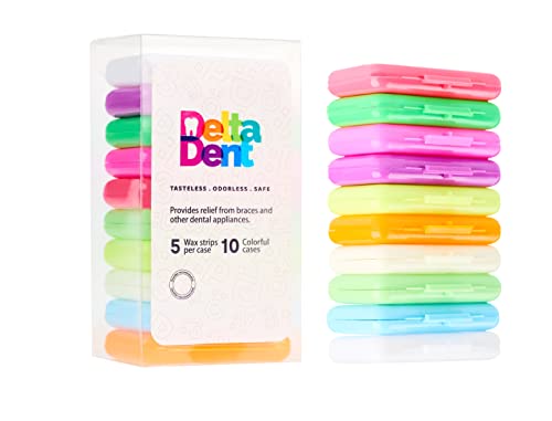 10-pack ortodontiskt vax för tandvårdsprodukter - 50 stycken högkvalitativa ortodontiska vaxremsor i färgfodral - smaklöst och icke-parfymerat
