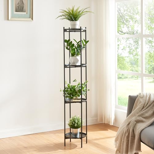 [en.casa] Blomhylla, Tuusula växtbord, växtställ med 4 hyllor, växthylla, blompelare, metall, blomtrappa, svart, 134 x 25 cm
