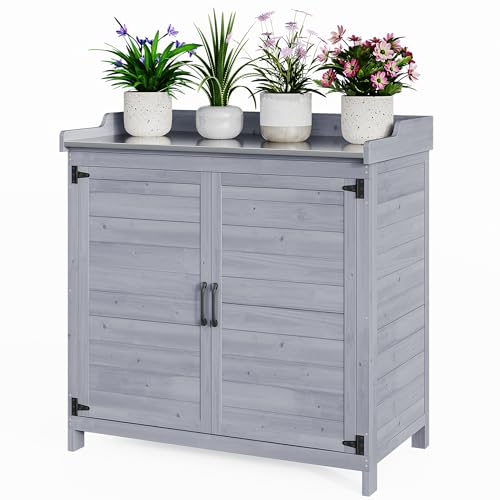 Bealife växtbord med underskåp, trädgårdsskåp med bänkskiva med 1 flyttbar hylla för inomhus- och utomhusbruk