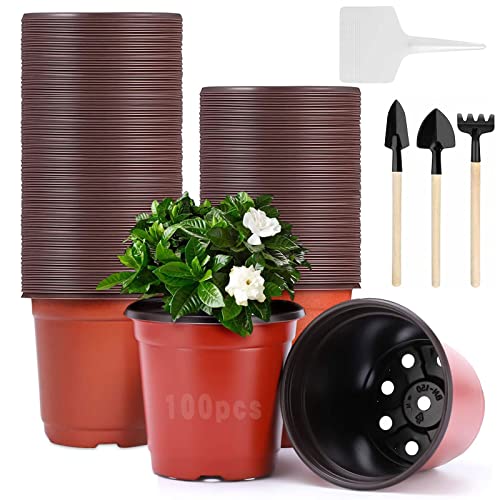 100 stycken såddkoppar 10 cm, blomkrukor utomhus och inomhus, levereras med 10 växtetiketter och 3 trädgårdsredskap