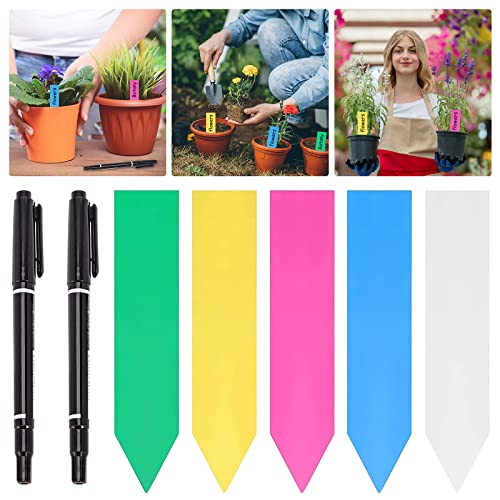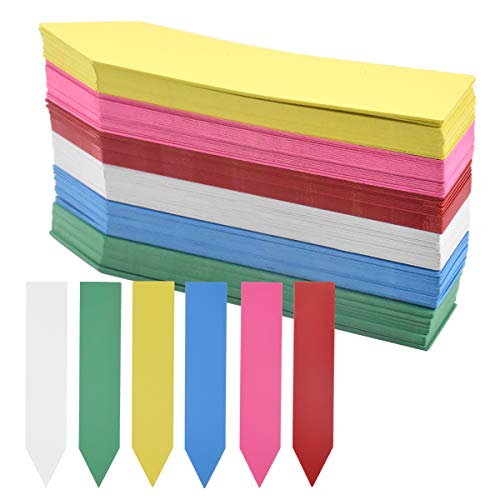 JOKILY 500 stycken växtskyltar i plast, 10 x 2 cm, färgglada växtetiketter, väderbeständig plast trädgårdsetiketter med 2 svarta pennor, trädgårdsväxt, etiketter, växter