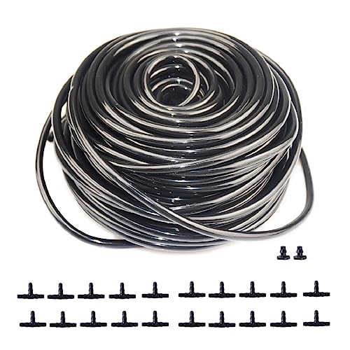 VooGenzek 77 ST 4/6 mm Bevattningskit, 15m Bevattningsslang, DIY Trädgårdsbevattningssystem, med Raka Hullingar, Hullingförsedd T-anslutning, ändplugg, för Landskap, Växthus, Uteplats