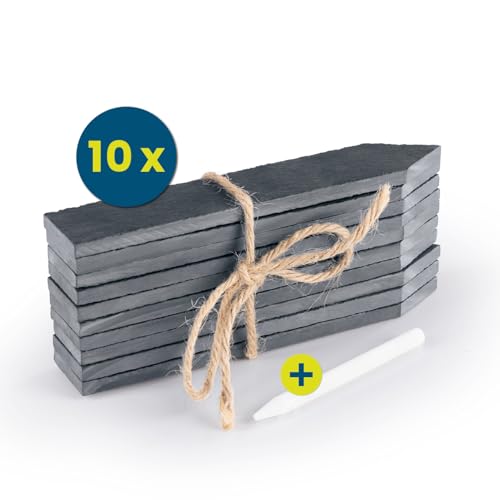 Hoberg Skifferväxtskyltar set om 10 – robusta skifferplattor för trädgård, örtbädd och upphöjd bädd | väderbeständig, hållbar och idealisk för växthus | 15 x 2,5 cm [svart]