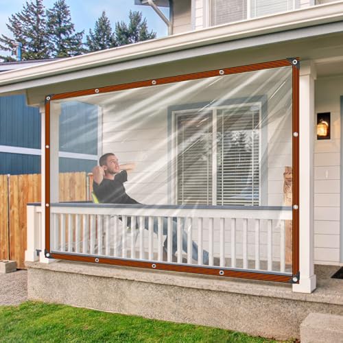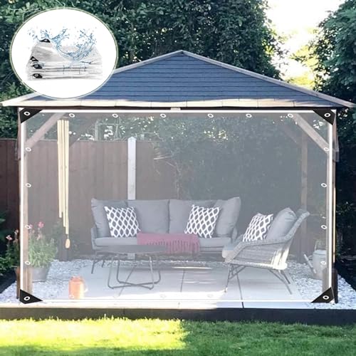 Pvc vattentät transparent presenning, genomskinliga presenningsgardiner, pergola, lusthus, uteplats, veranda, carport, sidopaneler, trädgård växthus växtskydd, med öljetter, klar-2,5 × 3,5 m (9 x 1,5