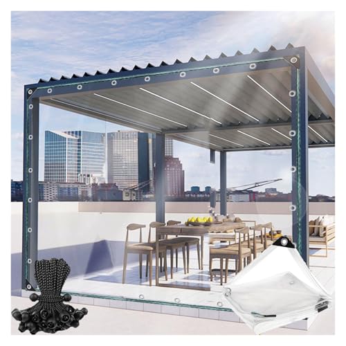 Woltu Transparent Presenning Med Öljetter - PVC 380 g/m² 3 x 5 m, Vattentätt Och Vindskydd Med Rep För Terrass, Lusthus, Växthus