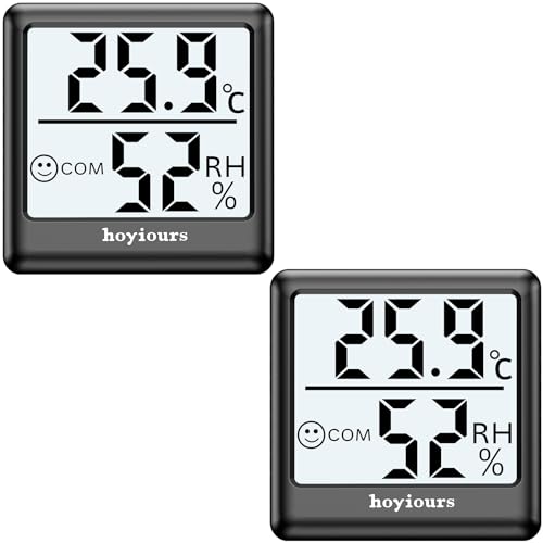 Termometer, hygrometer, inomhus, hoyiours, digital termohygrometer med stor LCD-skärm, smiley-indikator, 3 sekunder, snabb uppdatering, minifuktighetsmätare för kontor, skola, växthus 2 svart