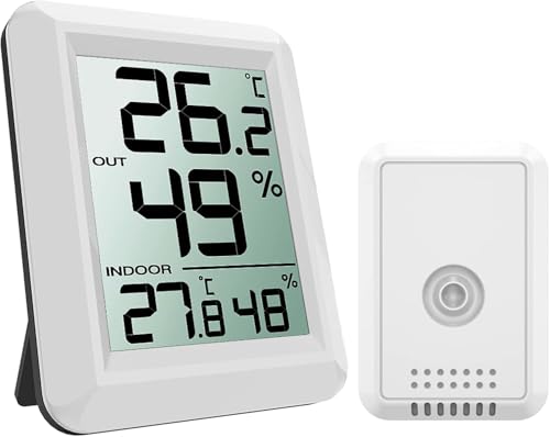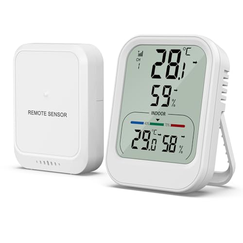 ORIA Termometer, digital hygrometer, inomhus utomhustermometer med trådlös sensor, räckvidd 328 ft/100 m, max/min, °C/°F, piltrend, temperaturmonitor för växthus, källare, garage