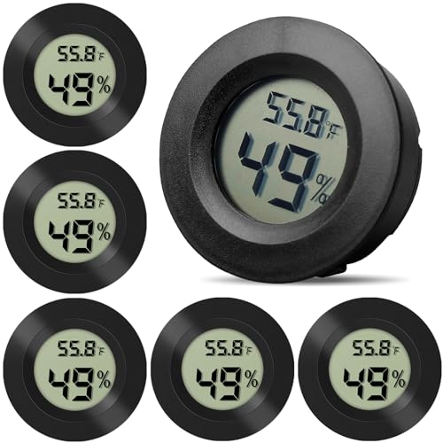 Thlevel LCD digital temperatur luftfuktighet meter termometer, mini digital termometer hygrometer och luftfuktighetsmätare för växthus/bilar/hem/kontor, svart, 6 Pack - Round