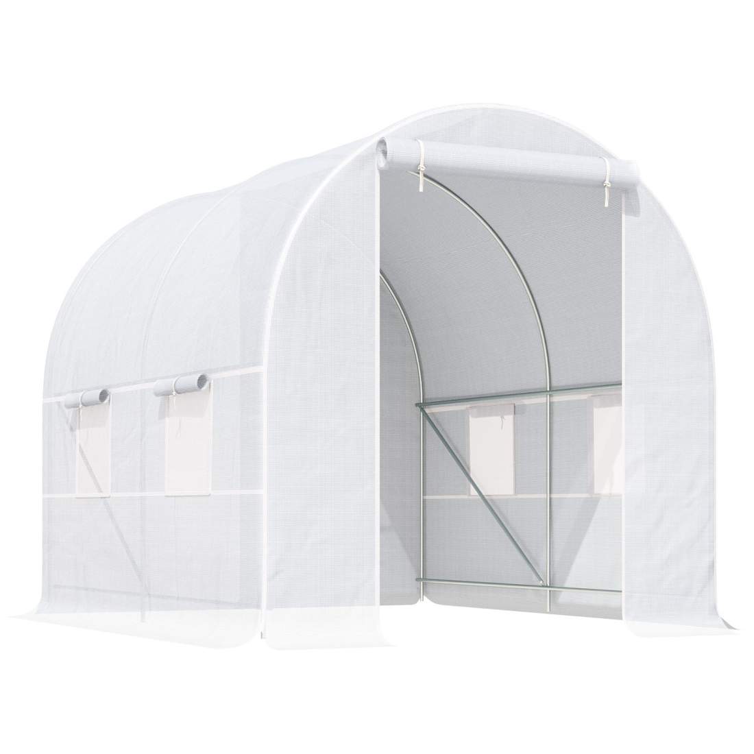 Växthusfilm växthus 3,97 x 3,02 x 2 m med UV-skydd, vindtätt tomathus med stålsidodörr i vitt