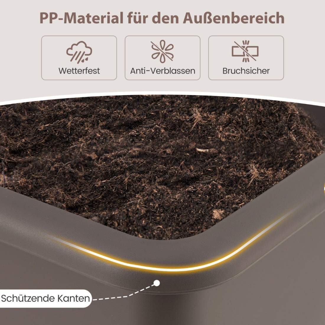 2 upphöjd trädgårdsbädd av plast 29 L växtlåda med avtagbara ben och dräneringshål kaffe