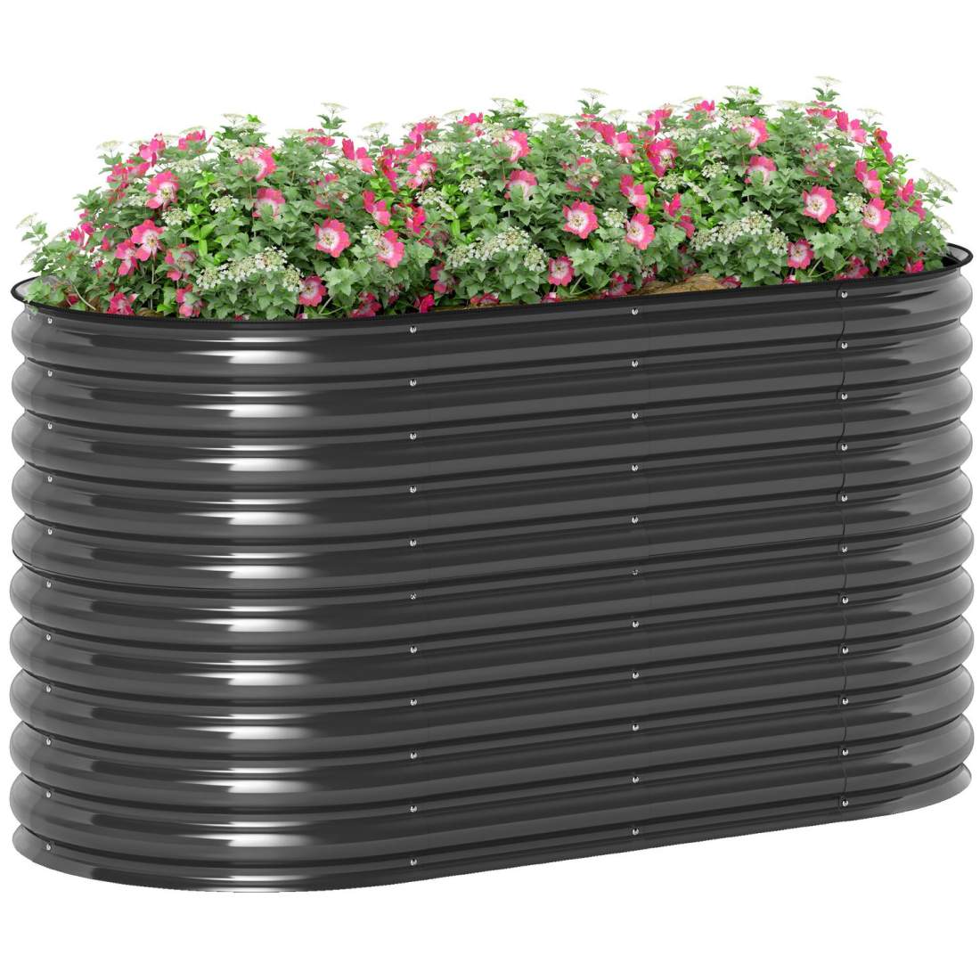 Upphöjd bädd av stål 241 x 90,5 x 30 cm växtlåda blomsterlåda trädgårdsbädd örtbädd grönsaksbädd grå för trädgårdsälskare