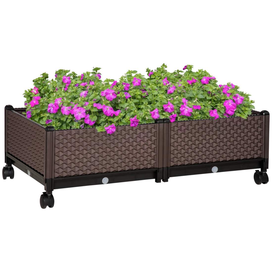 Upphöjd Växtlåda Set med Hjul och Avlopp