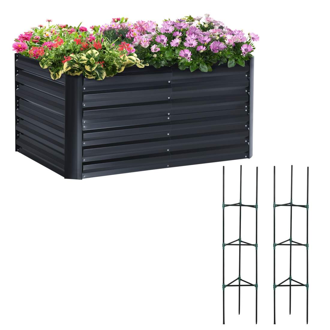 Upphöjd Växtlåda Med Stödgaller, Mörkgrå Stål
