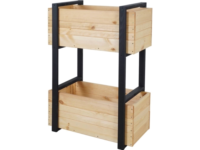 Upphöjd Växtlåda i Massivt Trä med Hyllor