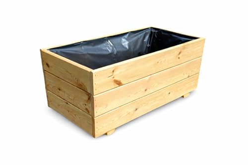 FKL växtlåda av trä, planteringskruka, låda, trädgård, terrass, färdigmonterad D27 (rå, 90 cm)