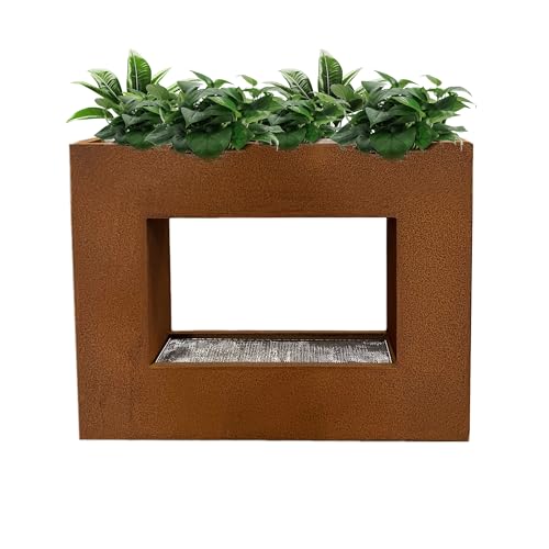 KÖHKO® Vattengardinsfontän planterbar med LED-belysning, höjd 60 cm av cortenstål med växtlåda, vattenfall, vattenspel, rumsfontän 32001B