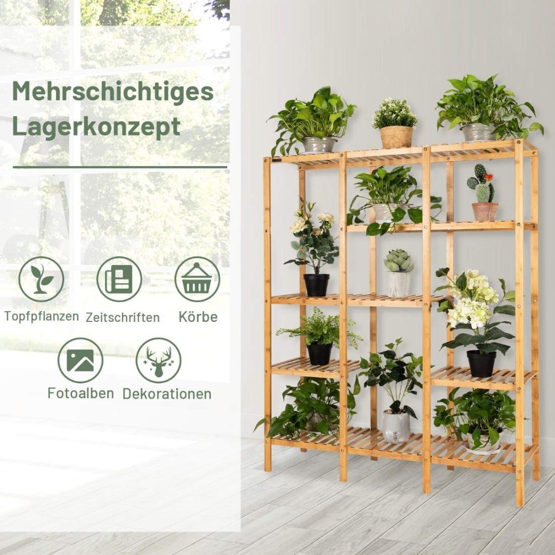 Bamworld Växtställ inomhus utomhus hörn växthylla 5 nivåer 11 krukväxter hyllor trä växtstativ trädgård trä växthållare ställning för vardagsrum hörn gräsmatta fönster
