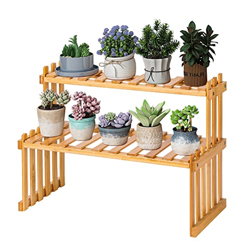 Generic 2 nivåer bambu växthylla, 40 cm (15 tum) inomhus suckulentstativ, flera växtställ, bordsväxtsorganisatör, rustik växtsteghylla, skrivbord växtställ