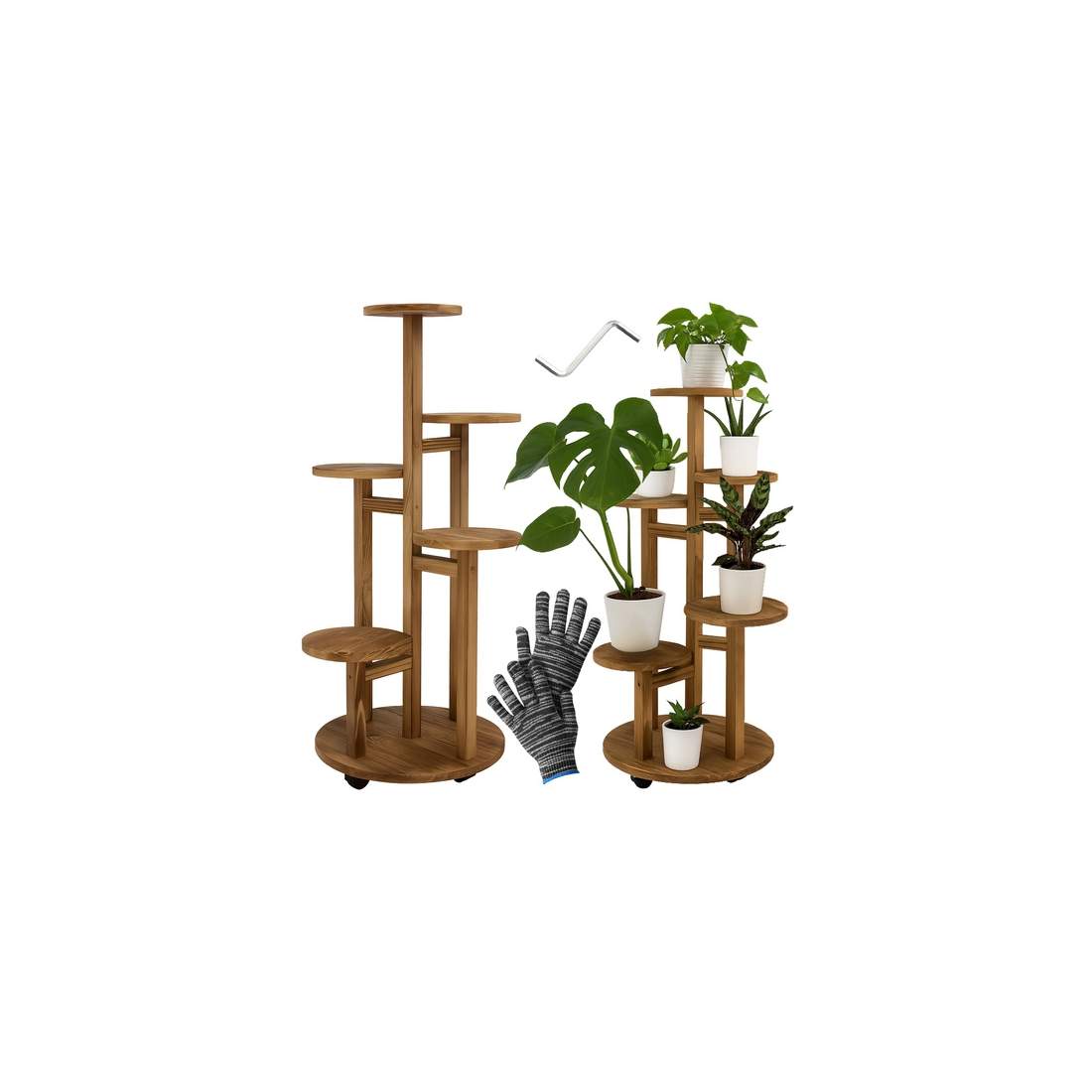 Växtställ i trä med hjul – 6 nivåer, rymmer 7 krukor