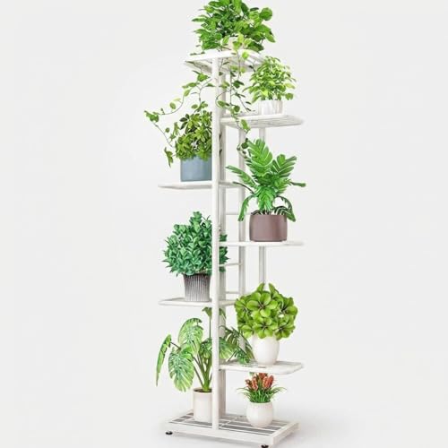 GarveeHome 7-nivåer metall blomhylla växthylla flera våningar blomställ växtställ blombänk blomtrappa hörnhylla, växttrappa, stående hylla för inomhus, trädgård, balkong, dekoration