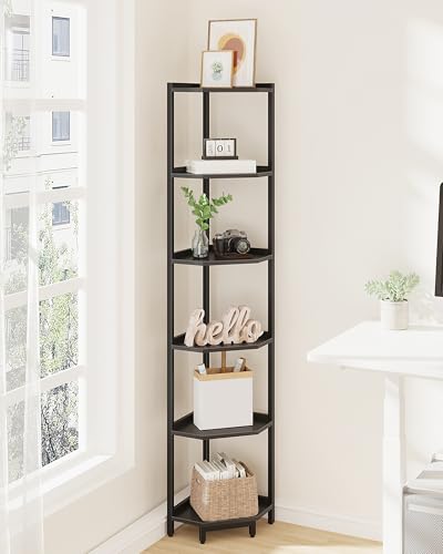 Hzuaneri Hörnhyllställ, Hörnbokhylla, Stående Förvaringshylla med Metallram, Växtställ, Hörnbokhylla för Vardagsrum, Hemmakontor, Sovrum, 6 Nivåer Svart CS06006B