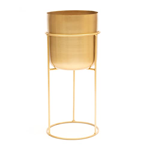 Olly & Rose matt växtkruka i metall med guld växtstativ – 50 cm stor växtkruka inomhus med stativ – stor dekorativ planterare