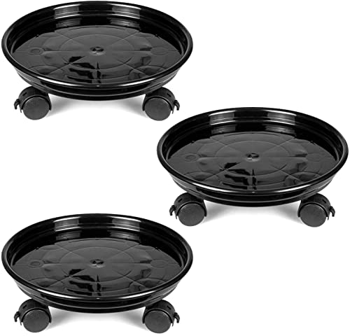 Fasmov 3-pack växtcaddie 30 cm plastväxtkruka vagn växtstativ planterare rulle slitstark kruka för hem trädgård kontor växt grytstativ med universella hjul, svart