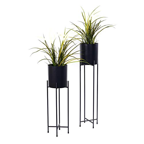 Olly & Rose Växtkruka med växtstativ - metall växtkrukor inomhusplanterare 22 cm stor blomkruka (svart)