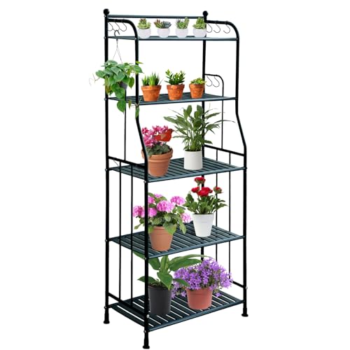 Zstar 5 våningar växtställ blomställ metall växttrappa hörn blomhylla växthylla inomhus utomhus flera blomtrappor med hjul för balkong trädgård vardagsrum, svart