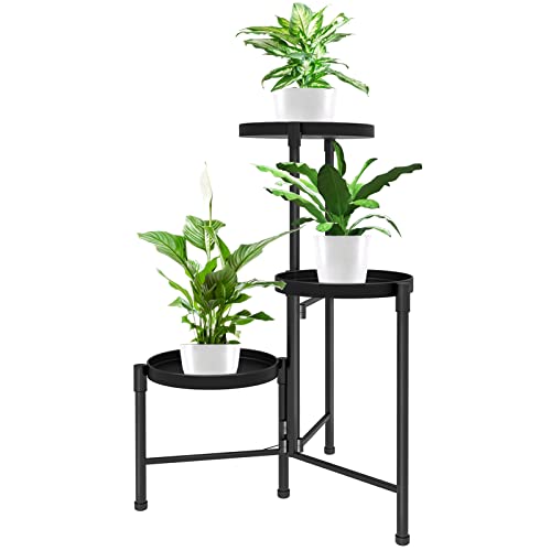 Zstar Växtställ metall blomhylla blomställ vikbar flera våningar växthylla dekorativ växttrappa stående hylla för rum hörn, vardagsrum, balkong, terrass, svart 3 nivåer stil B