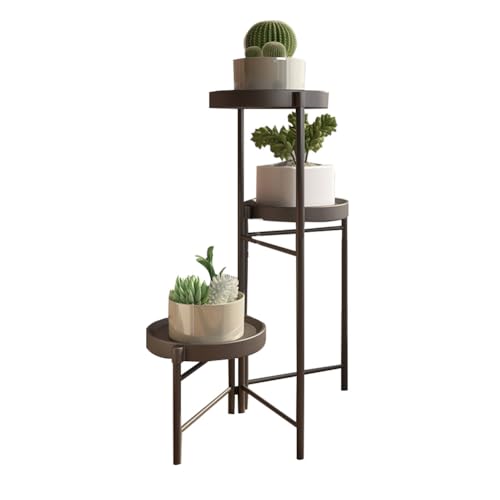 JOENCOST 3 nivåer metall blomhylla växtställ, flera blomkrukshållare med rund blomtrappa, dekorativ växttrappa, stående hylla för inomhus, utomhus, trädgård, balkong (svart)