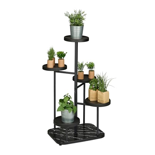 Relaxdays Blomhylla av metall, 6 hyllor för blommor och blomkrukor, växttrappa, HBT: 81 x 55 x 55 cm, svart