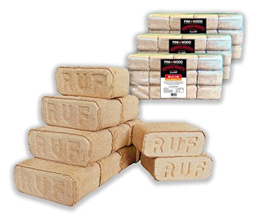 PINI Träbriketter 100 % bok lövträbriketter, RUF, öppen spis, ugn, grill, eldstad ved (30 kg)