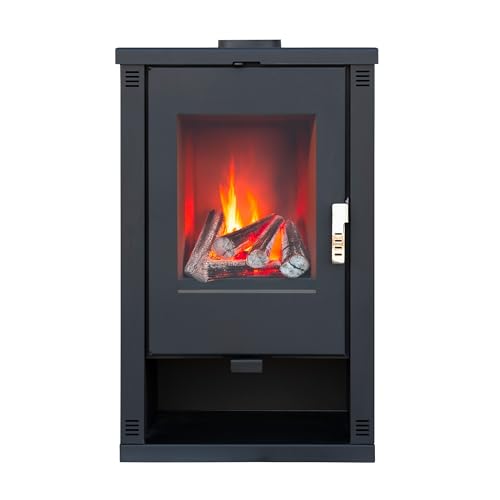ALAZ K10M Öppen Spis - Svart Vedeldad Kamin, 10 kW, Värmeugn, Kontinuerlig Ugn, Vedspis