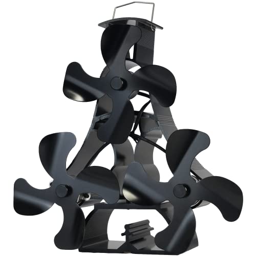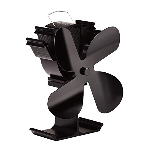 Uppgradering 4-bladig värmedriven fläkt för vedspis, vedeldad öppen spis - Miljövänlig och effektiv fläkt (svart)