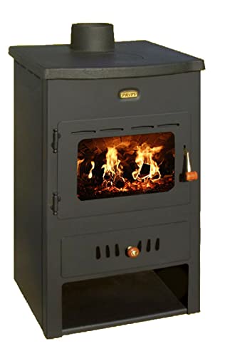 Prometey EEK A+ Kamugn med bakfack och spisplatta Perfect Eco Lux svart, höger, vedeldad spis 7 kW, kamin, trä, verkstadsugn ugn, värmeugn, trädgårdsugn, L