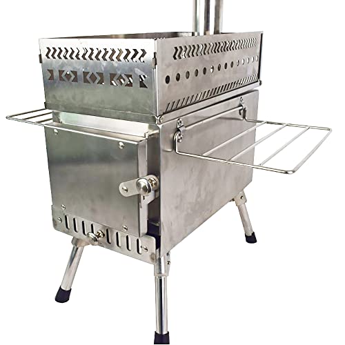 YilwnnCse Bärbar Vedeldad Campingspis,Tältkamin,Rostfritt Stål Utomhus Spis,Fristående Skorsten i Rostfritt Stål,Rostfritt Stål Material