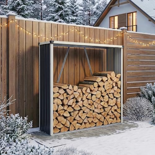 ShGaxin Vedvedställ, utomhus vedställ, utomhus vedförvaring, vedförvaring, vedhylla, svart stål matt 110 x 28 x 214 cm