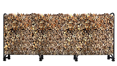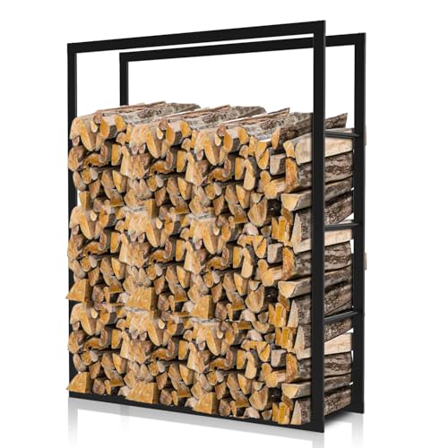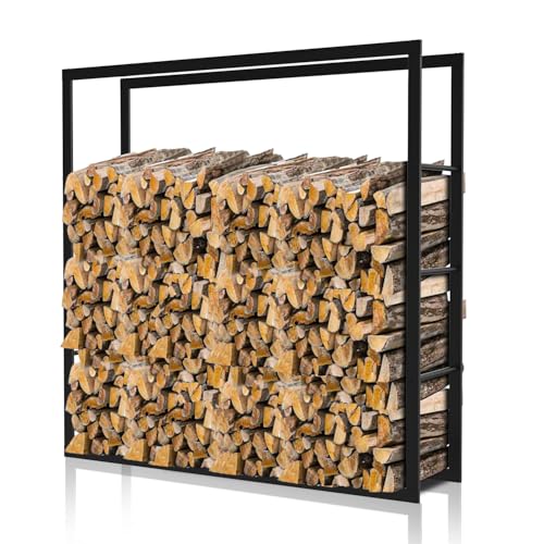 Ikodm Öppen spis, inomhus och utomhus, metall vedhylla utomhus 100 x 25 x 150 cm, trästapelstöd för öppen spis och ugn, träskydd för utomhus ved, svart