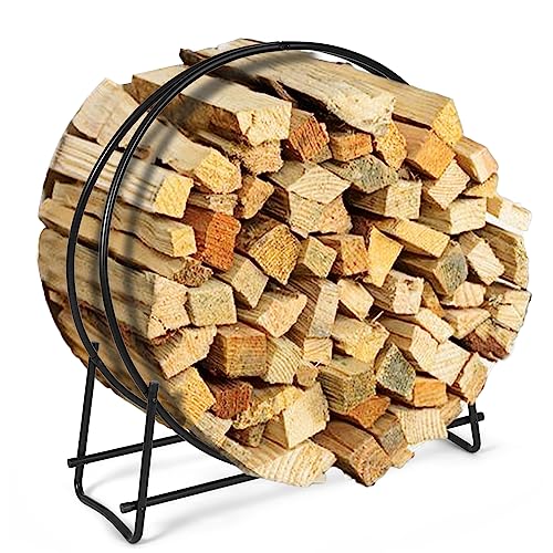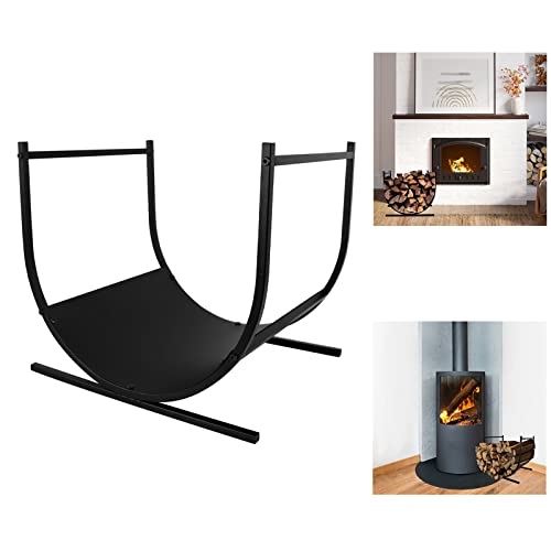 LZQ Vedhylla, vedhållare, metall, halvcirkel, vedställ, trästapelstöd, svart vedhylla, vedhylla, vedhållare, trähållare för inomhus- och utomhusbruk, 44,5 x 37,5 x 40 cm