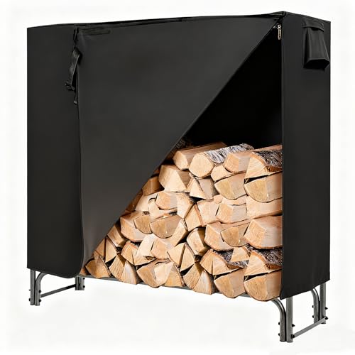 Amagabeli 122 cm x 35,6 cm x 122 cm) vedhylla med lock stor kapacitet utomhus stockhållare med vattentät 600D Oxford stockskydd väderbeständig vedförvaringshylla trädgård svart