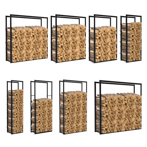 Lospitch Vedhylla av stål, vedställ med upp till 8 storlekar att välja mellan, stabil vedhållare, storlek: 25 x 60 x 150 cm (D x B x H), svart