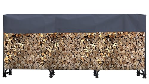 VEVOR Vedhylla, metall, 259 x 36 x 117 cm, vedhylla med lock, stålram, pulverlackerat, vedställ 300 kg, vattentätt stapelstöd, träskydd för veranda, trädgård, terrass, gård