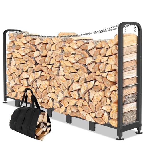 Himimi Rostskydd i metall, vedhylla 235 x 32 x 116 cm, 1134 kg, hållkapacitet, vedhylla utomhus, storlek justerbar trähylla med vedbärväska, vedställ med 2 tippsäkra kedjor