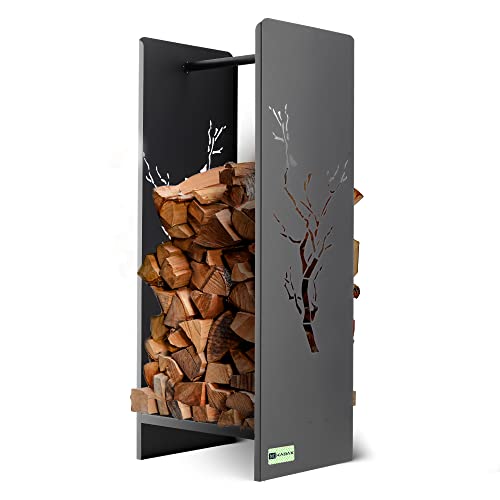 KADAX Vedställning, vedhylla av robust stål, svart vedhållare, pulverlackerad vedhylla i olika mönster (29 x 40 x 90 cm)