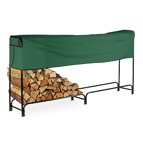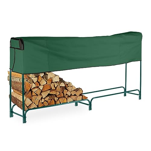 Relaxdays, mörkgrön vedhylla med lock, stål, stapelstöd för ved, vedhylla, HBT: 122 x 250 x 30 cm, polyester