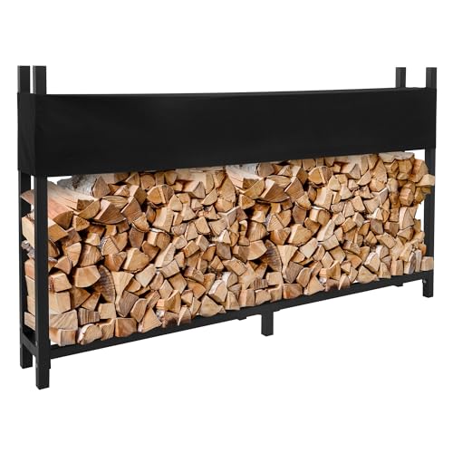 Relaxdays Vedhylla, extra bred, presenning för träförvaring, vedställ metall, HBT 122 x 245 x 40 cm, svart